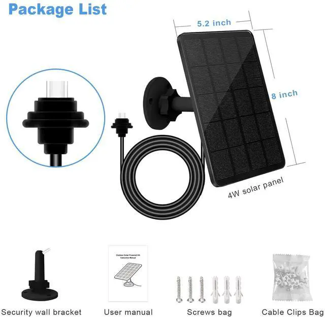 The 4W solar panel is specially designed for Blink cameras, equipped with USB-C port, which can provide stable and efficient power supply for Blink Outdoor 4 (4th Gen) camera.