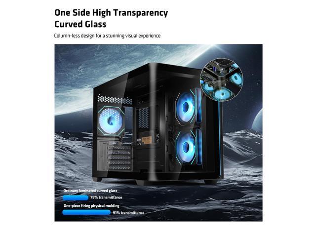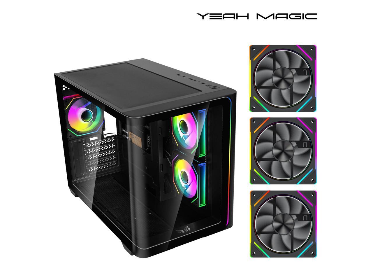 YEAH MAGIC Biforst MATX PC Gaming Case ARGB Full Clear-Side High-Airflow Light Strip Sturdy One-Piece Curved Glass With 3 ARGB Fans Mid-Tower Art Computer Chassis Striped Rainbow Lamp Black