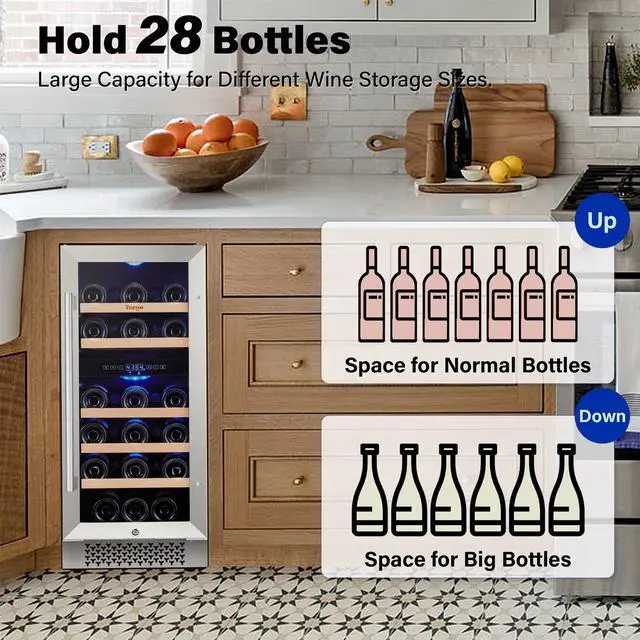 | Included Components | wine cooler fridge, 5 Wooden Shelves, Keys, Stainless Steel Handle, Instruction Manual, L-Shaped Screwdriver |