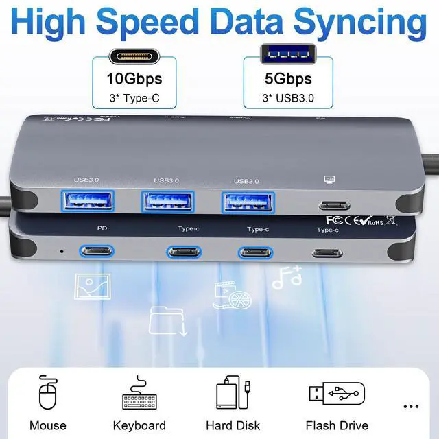 Delivers ultra-fast data transfer, high-resolution display, and high-power charging through a single USB-C connection.