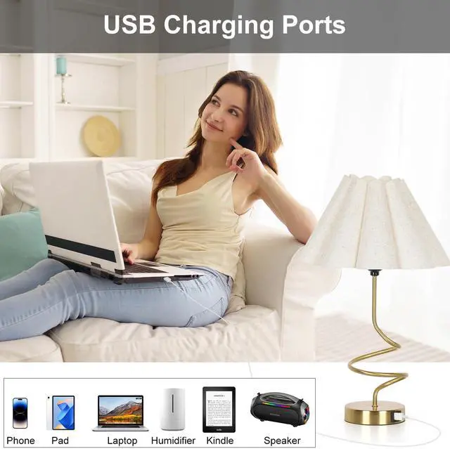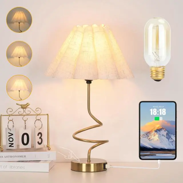 Modern Table Lamps, 3-Way Dimmable Touch Control Minimalist Bedside Lamp for Nightstand with USB A Charging Ports, Side Table Lamp with Pleated Shade for Bedroom, Office, Living Room, Bulb Included