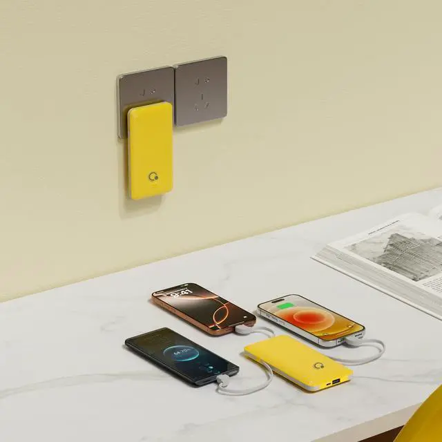 Built- in AC wall plug for recharge the power bank ,no need take extra travel adapter and cables when outside.
