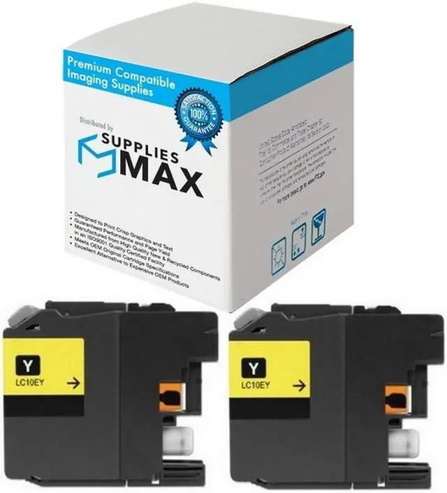 SuppliesMAX Super High Yield Inkjet compatible replacement for Brother LC-10EY2PKS. Yields up to 1200 pages at 5% coverage. Premium ink delivers vibrant color and sharp text for photos, presentations, and everyday documents. Engineered for reliable performance, long-lasting results, and seamless installation in supported 110V U.S.-based printers.