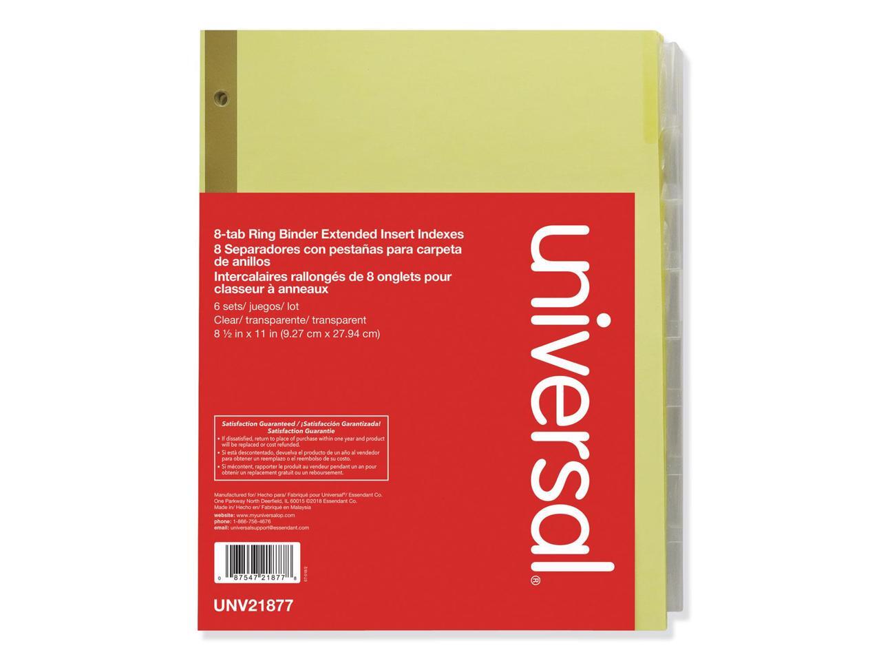 UNIVERSAL Extended Insert Indexes Eight Clear Tabs Letter Buff 6 Sets/Box 21877