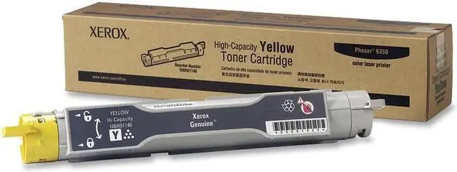 Toner cartridge is designed for use with Xerox Phaser 6350. Cartridge yields approximately 10,000 pages.