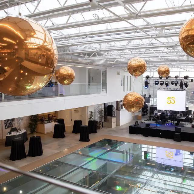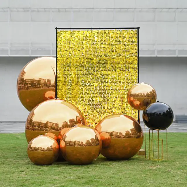 - Dazzling Reflections - 20" Inflatable Mirror Ball with reflective gold surface catches and reflects light, creating a mesmerizing display and adding an unforgettable touch of glamour to any event or home