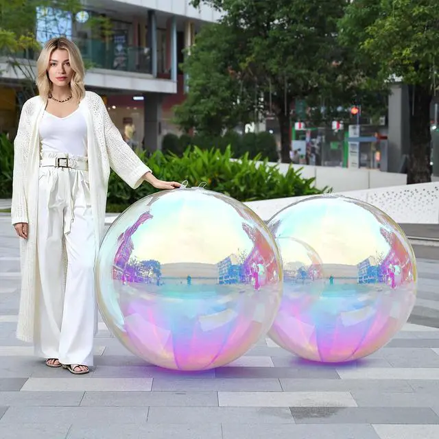 - Dazzling Reflections - Set of 2 pieces 40" Inflatable Mirror Balls with iridescent surface catch and reflect light, creating a mesmerizing display and adding an unforgettable touch of glamour to any event or home party