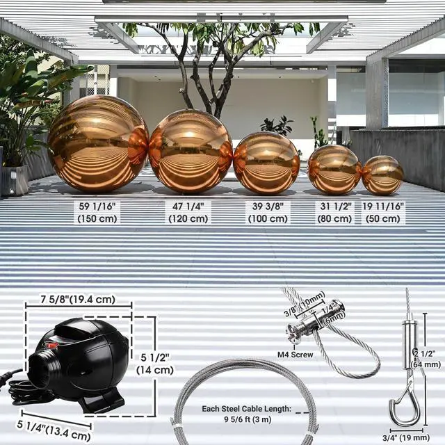 - Mirror Ball Diameter 59 1/16", 47 1/4", 39 3/8", 31 1/2", 19 11/16" (150 cm, 120 cm, 100 cm, 80 cm, 50cm)