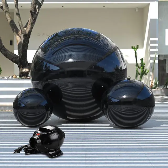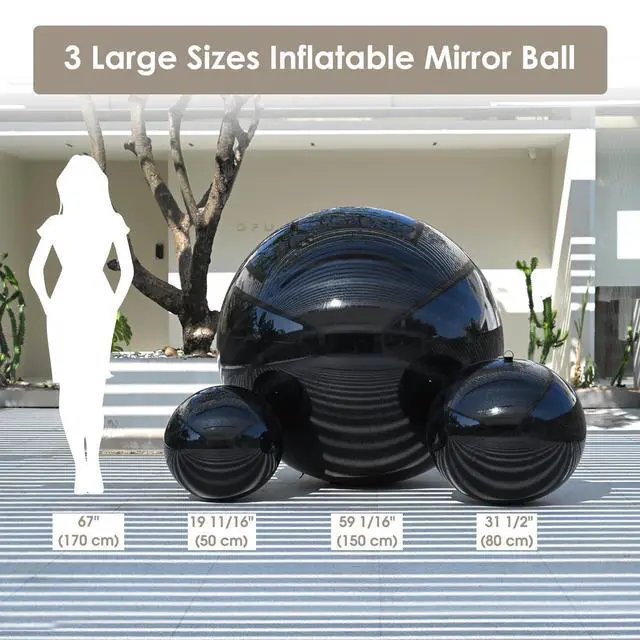 - Effortless Inflation - Electric Air Pump and Mirror Ball Kit includes an electric air pump and 3 shiny black balls in different sizes, allowing convenient setup and hassle-free decoration for pool parties, home parties, creating chic backdrop that will impress your guests and elevate your party,ideal for wedding backdrops, engagement party event decor