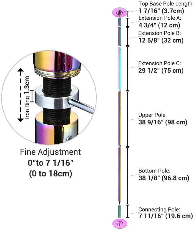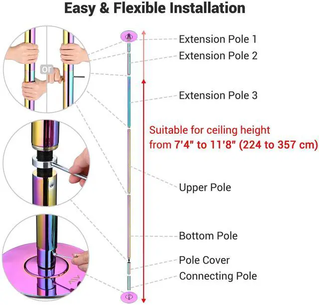 - Simple & Flexible Installation - Includes an 8ft dancing pole and 3 extension poles for ensuring the ease of combination, allowing you to adjust the dancing pole to your desired length according to different ceiling heights