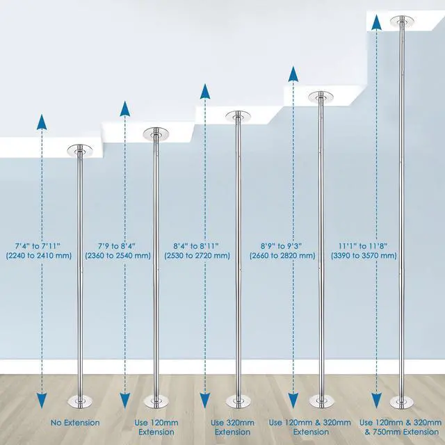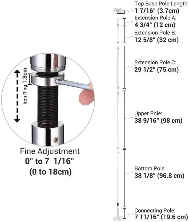 - Simple & Flexible Installation - Includes an 8ft dancing pole and 3 extension poles for ensuring the ease of combination, allowing you to adjust the dancing pole to your desired length according to different ceiling heights