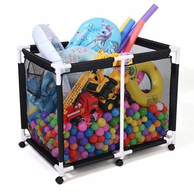 - Easy Mobility - Equipped with 6 smooth-rolling wheels for making it easy to move around the pool and put away pool toys, 4 wheels lockable for securely anchoring the storage bin for added stability