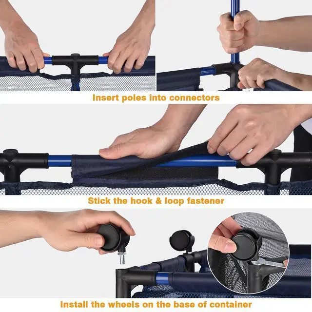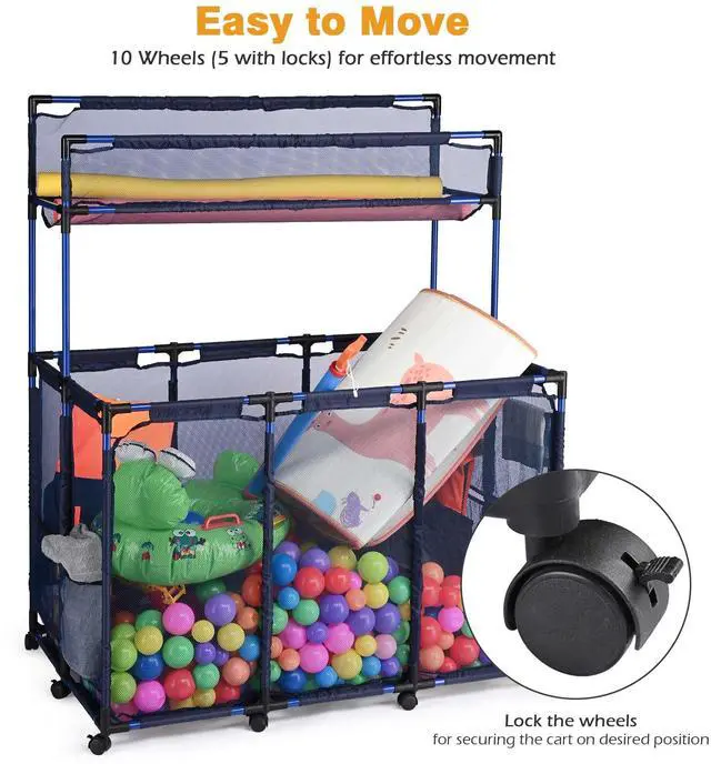 - Portability & Wide Application - This 49 7/16" x 30 1/2" x 61" Mesh Pool Storage Bin Cart features 10 wheels, a detachable and lightweight design for effortless movement and easy & space-saving storage, along with a 33Lbs max weight capacity for keeping pool noodles, swimming rings, balls and other accessories in home or public swimming pools, water parks, natatoriums and more