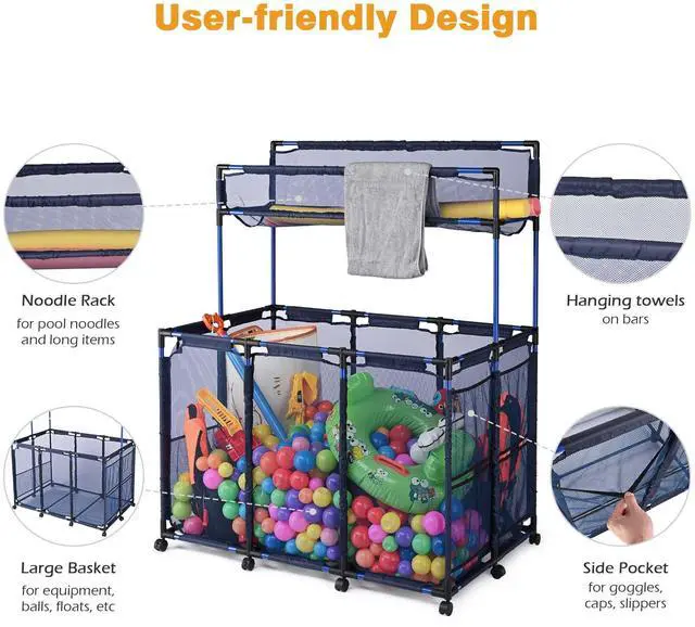 - Noodle Holder - Comes with a top noodle holder for storing your pool noodles and long items, saving more space and ensuring easy accessing to the noodle you need; you can also hang your towels on the holder bars, allowing for convenient use after swimming