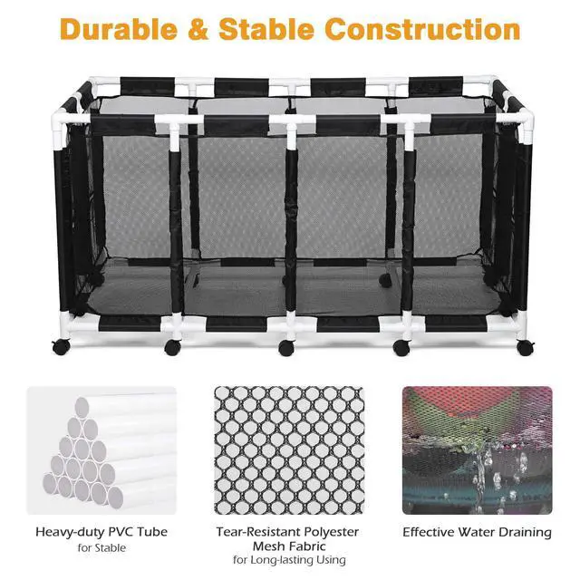 - Quick-Dry Ventilated Mesh - The tightly woven, high-density mesh ensures excellent airflow, allowing water to drain and pool toys to dry quickly and thoroughly to prevent unpleasant musty smell. Create a consistently fresh and sanitary pool environment for your guests