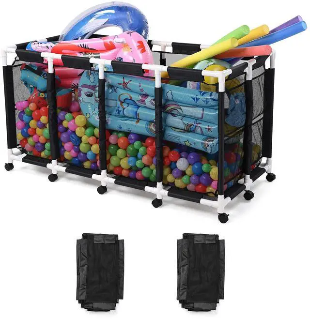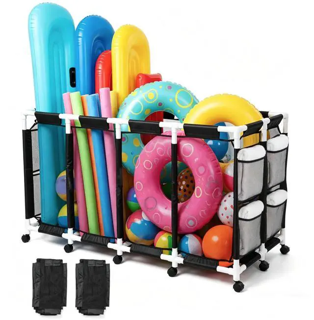 - Massive 274-Gallon Capacity - Picture all your pool toyssurfboards, loungers, floaties, and noodlesneatly consolidated into one organized station. With added side pockets for goggles and sunscreen, this storage bin is the ultimate solution for maintaining the clean, luxurious aesthetic demanded by resorts and upscale villas