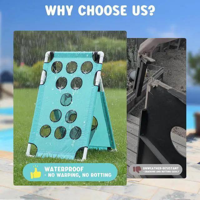 - All-Weather Durability - Yescom cornhole game set are builted with heavy-duty PVC tubes and tear-resistant polyester fabric. Resists sun, rain, sand, and humidity. No splinters, no rotting, no weather damage. Consistent slide for reliable gameplay season after season