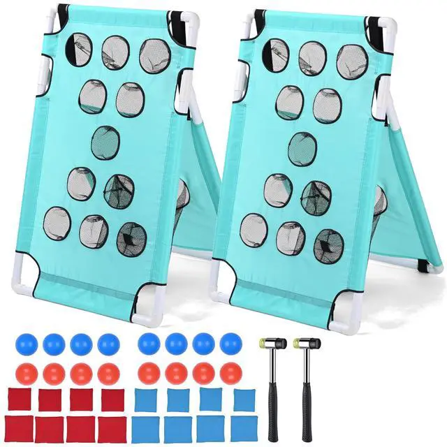 - Complete Set - Includes: 2 PVC boards, 16 toss balls, 16 bean bags and simple instructions.Open the box, snap the frame, and start playing within minutes. Great for gifting or instantly leveling up any outdoor event
