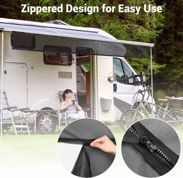 - Zippered Design for Convenience - Comes with a large zipper on the upper part, you can unzip the lower portion of sun shade and retract awning with the upper portion attached, save your time for next use