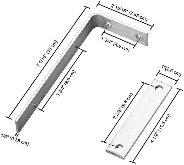 - L-Shaped Bracket Dimension(LxWxH): 7 1/16" x 2 15/16" x 1/8" (18 x 7.45 x 0.38 cm)