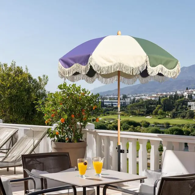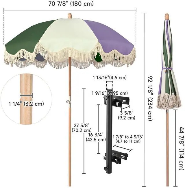 - Retro Umbrella & Deck Mount Kit - LAGarden 6Ft Vintage umbrella features candy-colored canopy with playful cotton tassels that evokes passion, and adding an eye-catching element to your parties and events, great for decorating food cart, ice cream stand, mobile stall, etc.