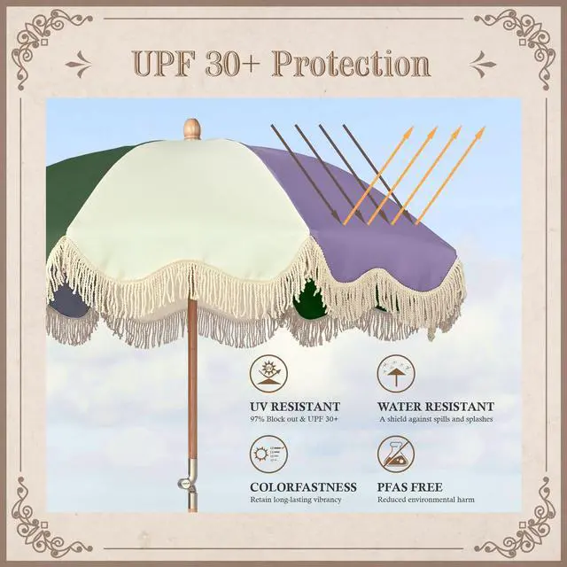 - UV Protection - The PFAS-free canopy blocks 97% of harmful sunrays with UV30+, keeping its long-lasting beauty; Features push and pop-up mechanism for easy opening, and aluminum hinge for tilting and adjusting the shading angle