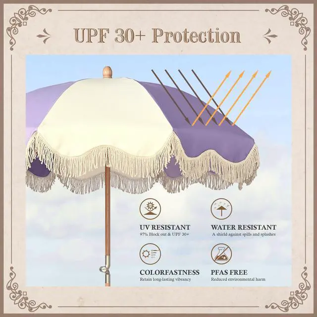 - UV Protection - The PFAS-free canopy blocks 97% of harmful sunrays with UV30+, keeping its long-lasting beauty; Features push and pop-up mechanism for easy opening, and aluminum hinge for tilting and adjusting the shading angle