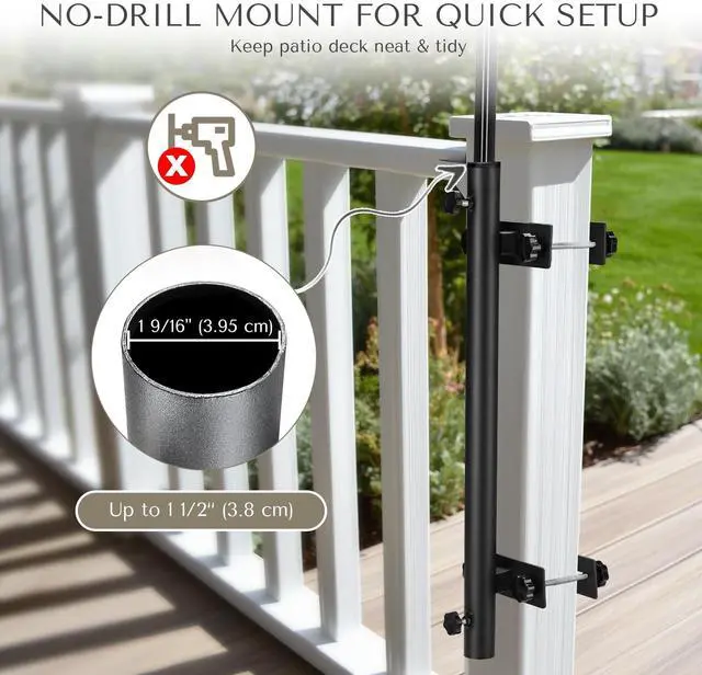 - Space-saving Deck Mount - Designed for mounting to your food cart, this rust-resistant steel umbrella holder allows for quick and easy installation and removal, for convenient shade wherever you need it