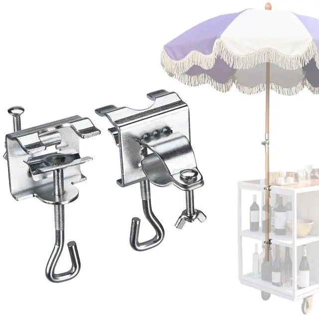 - Space Saving & No Drilling - Set of 2 Umbrella Clamp Stand holds the umbrella securely without drilling. With screw fixation, the umbrella stands can be adapted to different pole sizes, railings, and tables without taking up any floor space