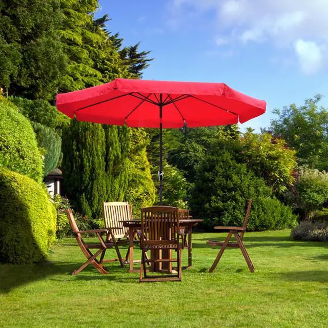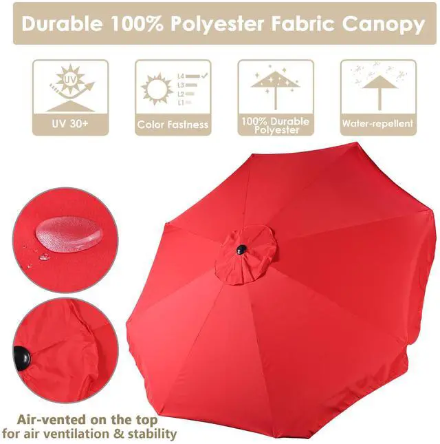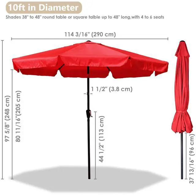 - Unique Valance Design - 10 ft Patio Umbrella is adorned in vibrant red color with straight valance for decoration to bring a unique summer vibe, providing ample shade for a 38" to 48" dia. round table with 4 to 6 chairs, allowing you to enjoy the scenery or savor a leisurely cup of coffee