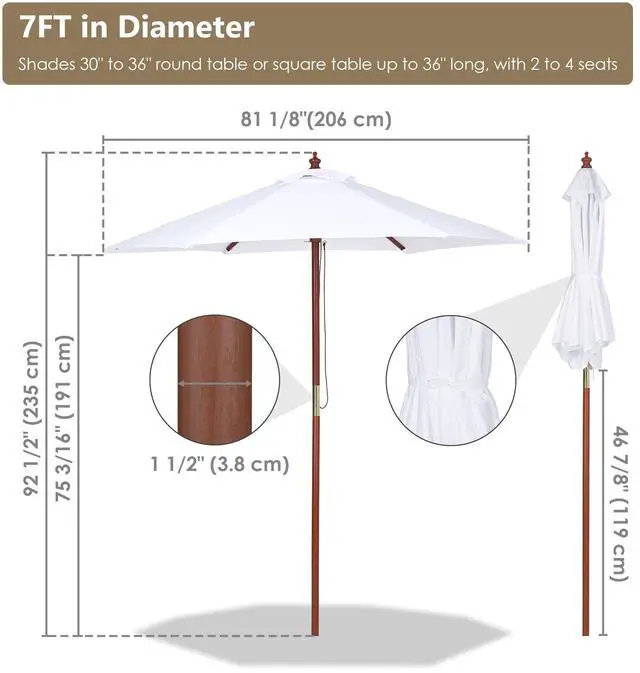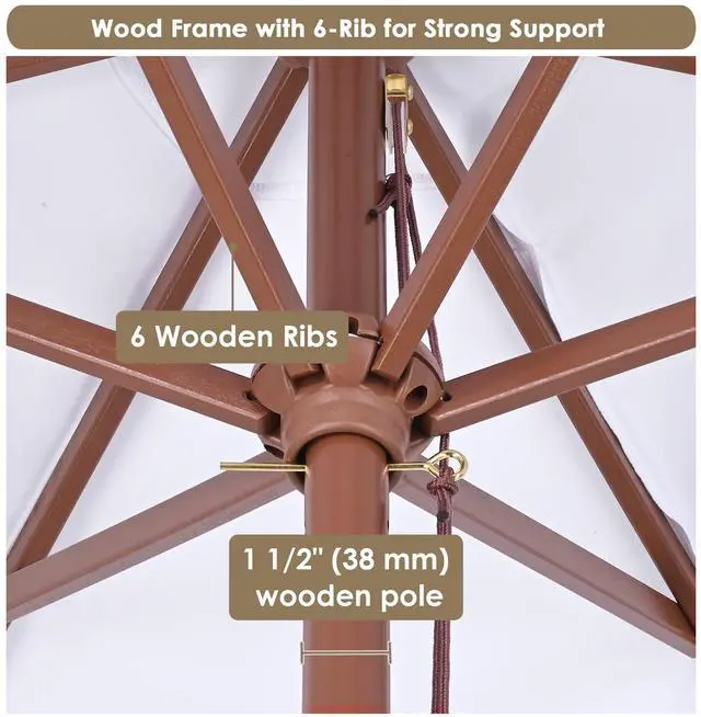 - Refined Wooden Design - Yescom 7ft Patio Umbrella, crafted with a solid wood frame and 6 reinforced ribs, adds a warm, elevated touch that helps create a more polished guest experience for cafe patios, restaurant terraces, and boutique hotel courtyards