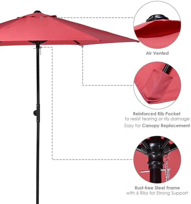 - Rust-free Steel Frame - Constructed with heavy-duty powder-coated steel for rust resistance, this patio umbrella ensures premium strength and stability for long-lasting use; Air vent design on the top for air ventilation prevents umbrella from inversion