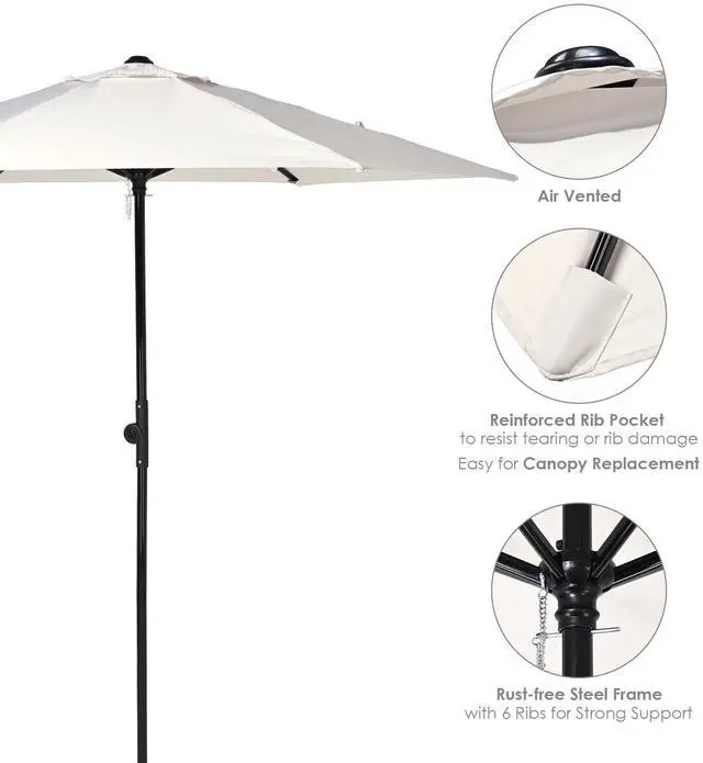 - Rust-free Steel Frame - Constructed with heavy-duty powder-coated steel for rust resistance, this patio umbrella ensures premium strength and stability for long-lasting use; Air vent design on the top for air ventilation prevents umbrella from inversion