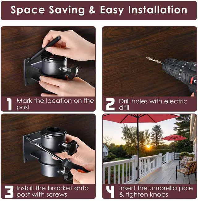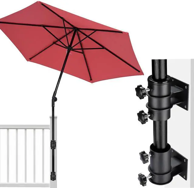 - Easy to Install - The 2 brackets are designed for simple installation, just fix the brackets on the railing with screws, and insert the umbrella pole, then tighten the knobs to fix the pole