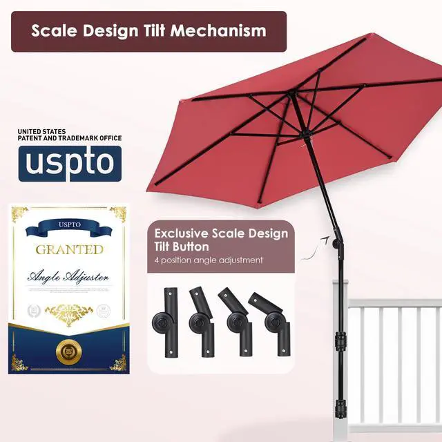 - Easy Operation with Tilt Mechanism - Stable 6-rib patio umbrella frame features a push system for opening and closing the umbrella easily, Patented Tilt Button for 4-position angle adjustment, allowing you to block the sun from various positions, foldable in one for space-saving storage