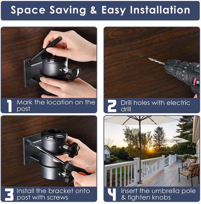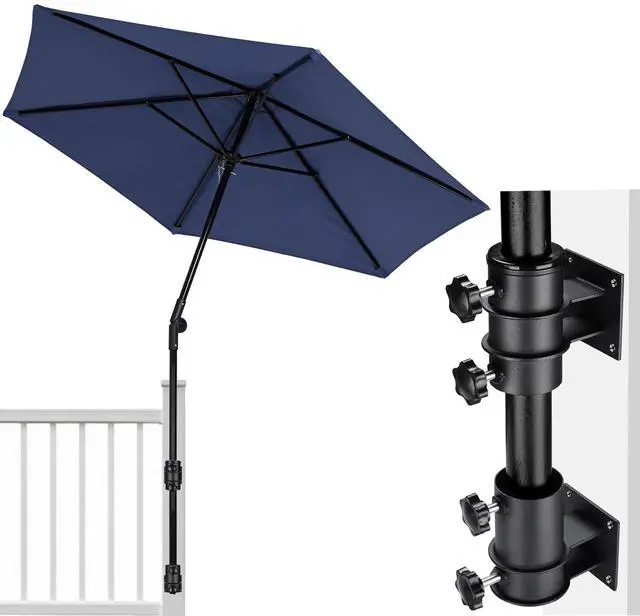 - Easy to Install - The 2 brackets are designed for simple installation, just fix the brackets on the railing with screws, and insert the umbrella pole, then tighten the knobs to fix the pole