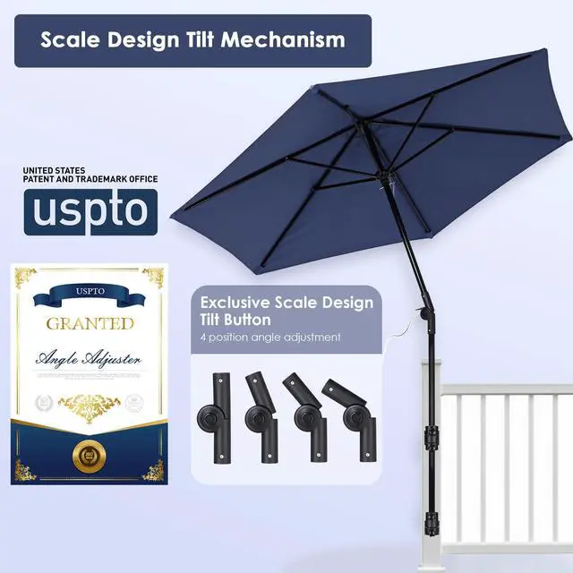 - Space Saving & Flexible Installation - Patio Umbrella & Mounting Bracket Kit includes a 7.5ft patio umbrella and 2 side mount brackets for easily mounting your umbrella on the deck railing without taking up large space in patio;