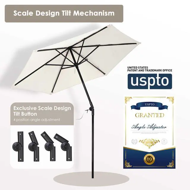 - Crank to Open & Push to Tilt - Crank handle for opening and closing the umbrella conveniently and effortlessly, along with a push button to adjust the angle of umbrella to block the sun light from different angles