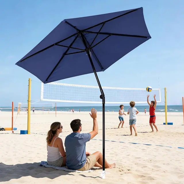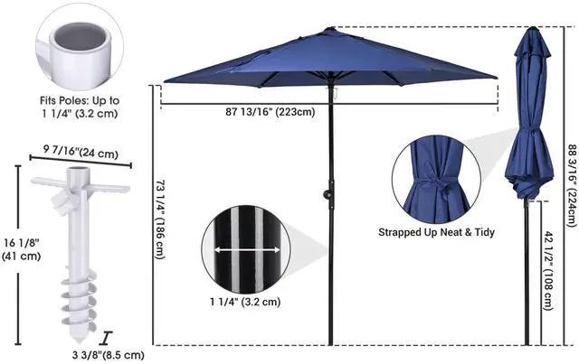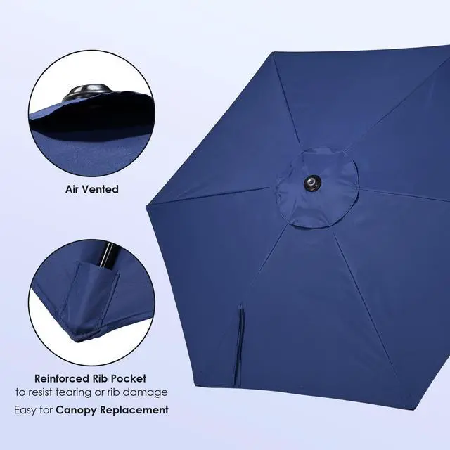 - Easy Tilt Mechanism - The portable navy blue umbrella features Patented Easy Tilt Button for 4-position angle adjustment, allowing you to block the sun from various positions throughout the day for maximum shade; offers an ample shading area that shades a 30" to 36" round table or a 36" square table