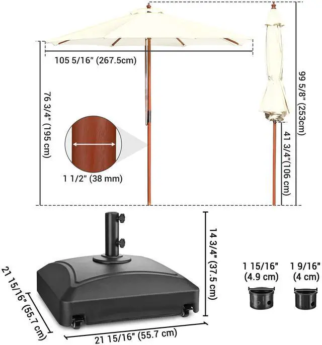 - Wooden Umbrella & Stand Kit - this kit comes with a 9 ft patio umbrella with wooden frame and a base with 4 universal wheels for fast setup and create a shaded spot for you to relax and enjoy the outdoors; the vintage umbrella features wooden ribs and pole to add some natural element into your space