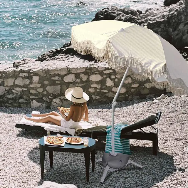- Yellow Striped Umbrella with Stand - this kit includes a 6ft yellow striped umbrella with cotton fringes and a portable umbrella stand, great for decorating your summer parties on the beaches, balconies, decks, gardens, lawn, lakeside, etc.