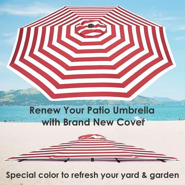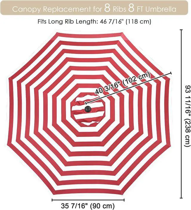 - Universal Cover Replacement - 8 ft Universal Replacement Umbrella Canopy fits 8 ft umbrella with 8 ribs measuring 46 7/16" in length, boasting vibrant red and white stripe pattern for freshening up your umbrella while infusing your outdoor space with a relaxed resort vibe