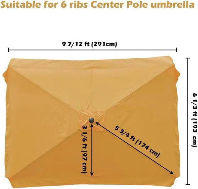 - Compatibility - Universal Replacement Umbrella Canopy fits 10x6.5ft 6-rib patio umbrella with long rib length from 5 2/3 to 5 3/4ft and short rib length from 3 1/6 to 3 1/4ft, also compatible with our umbrella model YES0292, YES0313 and YES0315; It features a rectangular design with dark yellow color for modern stylish style which matches well with different beach chairs to deliver a summer coastal vibe