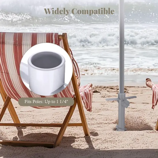 - Universal Fit - Widely suitable for beach or patio umbrella poles up to 1 1/4" in diameter, coming with a large thumbscrew for tightening & ensuring a secure hold