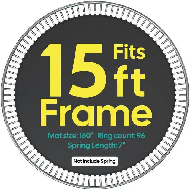 - Replace & Reuse - This Trampoline Replacement Mat is specifically designed for 15 ft round trampoline frames with 96 v-rings and 7" springs, allowing you to replace your worn-out or damaged trampoline mats and renew your existing trampoline without buying a new trampoline frame