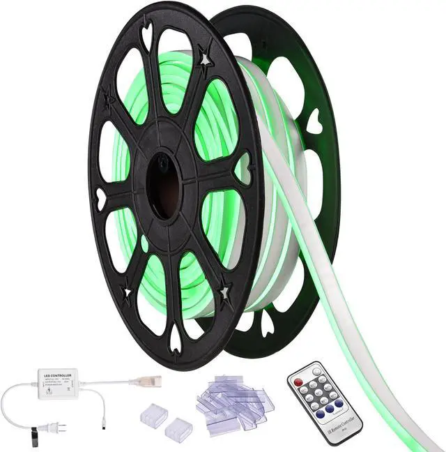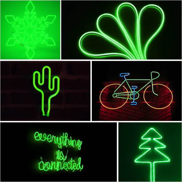- Soft & Bendable Strip for DIY - 50 ft DELight 2-Sided Neon Rope Light with 120 pcs ultra-bright LED bulbs per meter, flexible to fit any corner well & design angled pattern or logo you like, or in continuous rows, perfect backlight for ceiling, window, door, garage, also ideal for restaurant, store, bar, party, Christmas