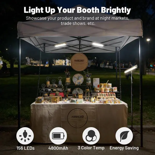 - 3-Way Effortless Setup - Light up your trade show booth or night market stall in seconds. This magnetic light bar features 3 mounting options, including a powerful magnetic base, built-in hook for hanging, and tripod mount, ensuring quick and easy setup on your pop-up canopy