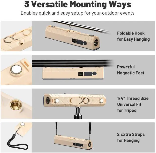- 3-Way Effortless Setup - Light up your trade show booth or night market stall in seconds. This magnetic light bar features 3 mounting options, including a powerful magnetic base, built-in hook for hanging, and tripod mount, ensuring quick and easy setup on your pop-up canopy