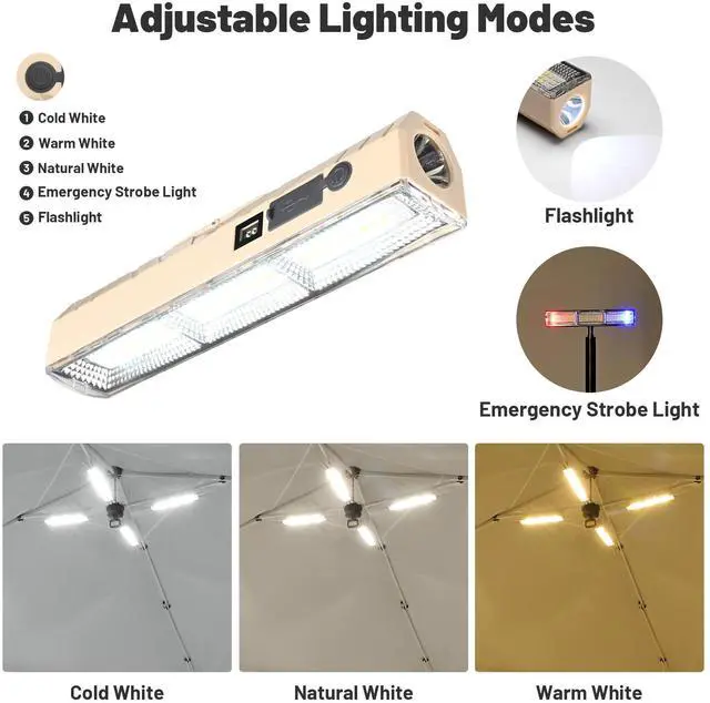 - Adjustable Lighting Modes - Set the mood for different themes with 3 distinct color temperature settings: Cold White, Warm White, and Natural White. Plus, the added red/blue strobe and flashlight functions meet your needs for emergency lighting