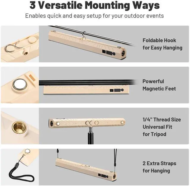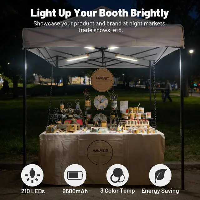 - 3-Way Effortless Setup - Light up your trade show booth or night market stall in seconds. This magnetic light bar features 3 mounting options, including a powerful magnetic base, built-in hook for hanging, and tripod mount, ensuring quick and easy setup on your pop-up canopy